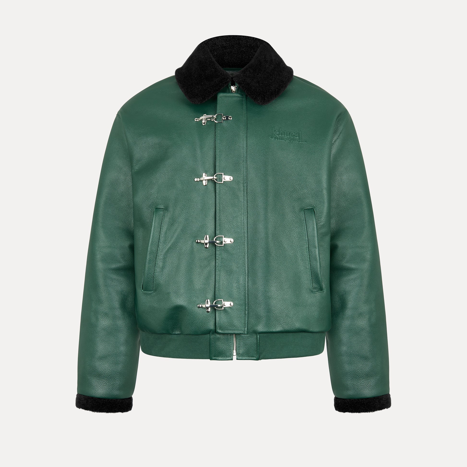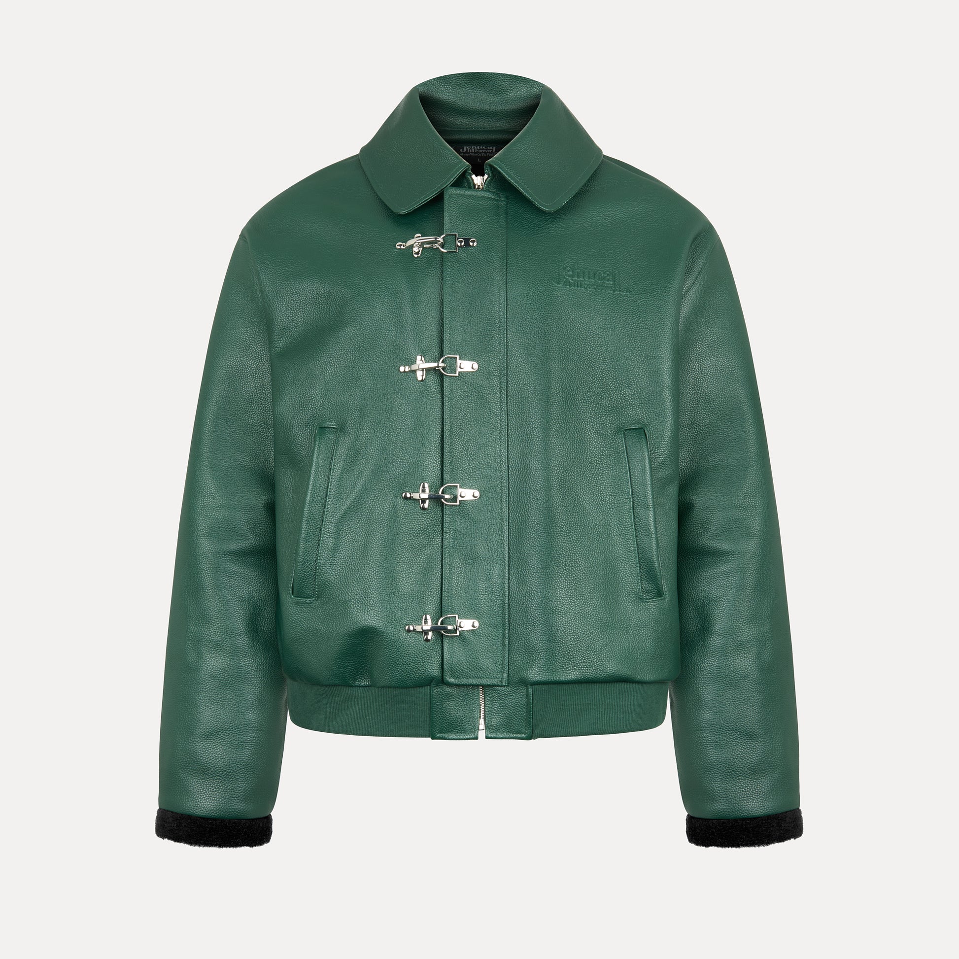 Verdant Clasp Leather Jacket (Removable Fur Collar)