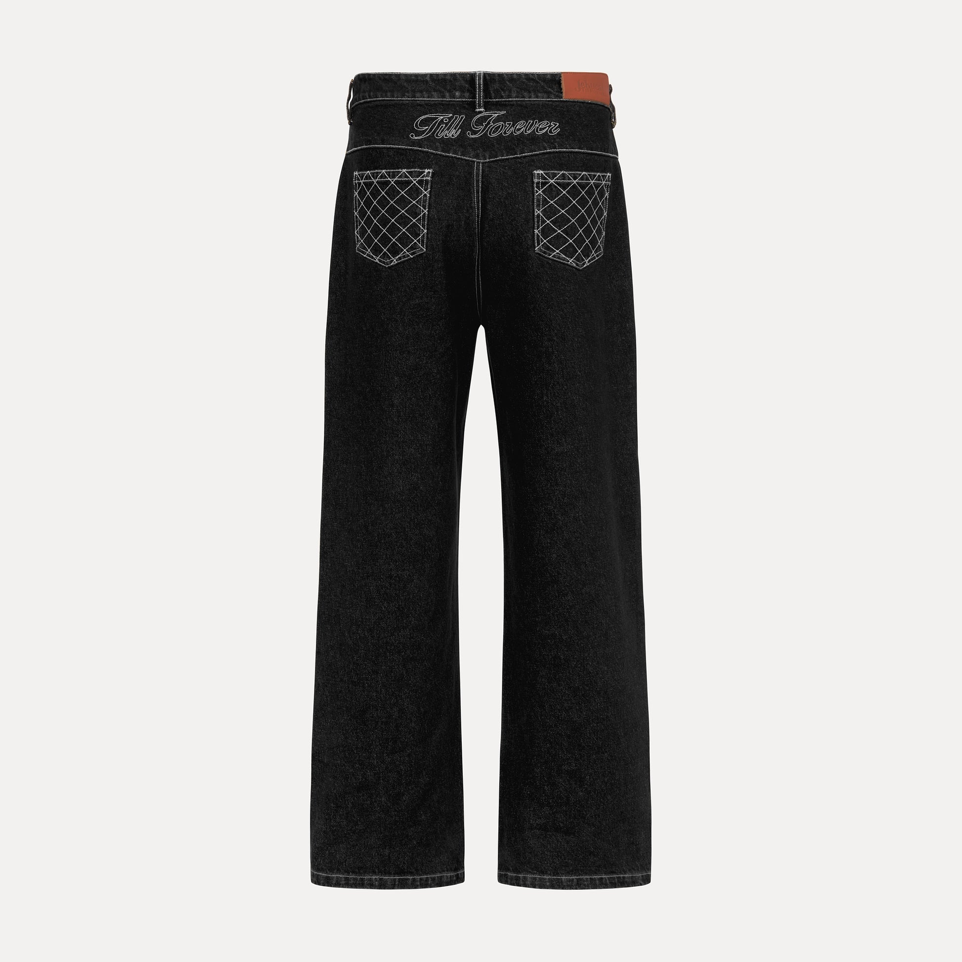 Made from 500 GSM (14.75 OZ) heavyweight denim, these jeans offer exceptional durability and warmth for cooler seasons. The wide-leg fit provides both comfort and a modern edge, while the embroidered Till Forever logo on the back adds a touch of sophistication.